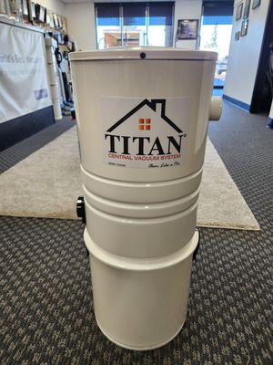 Titan Central Vacuum TCS4792. Covers up to 5000 square feet, 3.6 gallon dirt capacity, 127.1 CFM Airflow, 56 Decibels, weighs 20LBS., 11.9" diameter, 140.9 water lift, 600 Air watts, 10 year parts warranty.